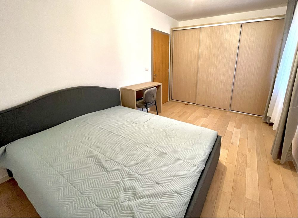 Se inchiriaza apartament modern cu 2 camere, complet mobilat si utilat Apartamentul este luminos, amenajat in stil minimalist si ofera tot confortul necesar pentru locuire imediata. Dotari: Centrala termica proprie Incalzire in pardoseala Termostat in fiecare camera Aer conditionat Masina de spalat Bucatarie complet utilata (cuptor, plita, frigider) Baie cu dus walk-in Dressing / spatii de depozitare Alte detalii: Mobilier modern Electrocasnice Zona linistita Disponibil imediat- Caracteristici 27-04-2026