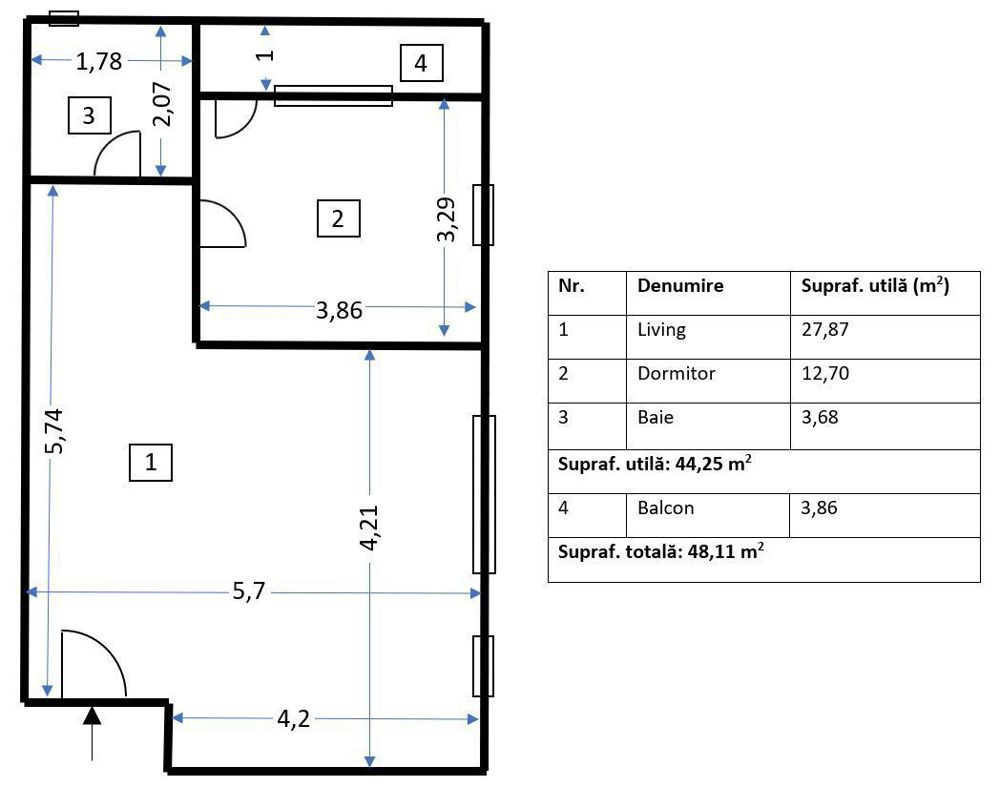 - Suprafata: 44 m²