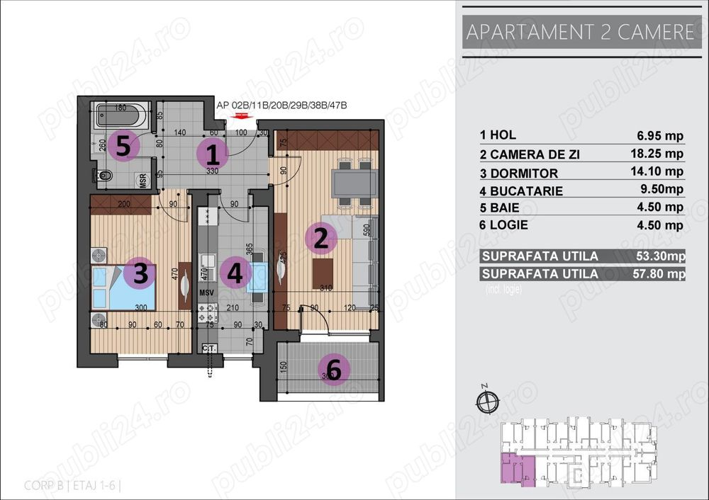 - Compartimentare: decomandat