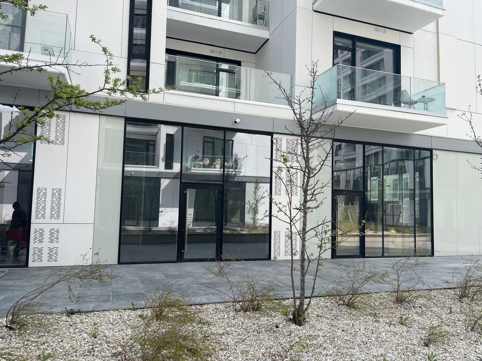 Proprietar inchiriez spatiu comercial nou situat la parterul blocului CT6, cu o suprafata de 90, 2 mp si o terasa de 43 mp. La subsol (-1) este inclus un loc de parcare de 12, 5 mp, dotat cu statie de incarcare electrica 7.4 kWh, contorizata individual. Amenajarea si utilarea sunt noi, realizate conform normelor PSI. Spatiul este la prima inchiriere. Detalii tehnice: Suprafata: 90 mp Vitrina generoasa (7 ml) cu vizibilitate excelenta Utilitati complete si functionale: curent trifazic (15 kWh), apa, climatizare Dotari PSI: senzori de fum (4), hidrant, stingatoare, buton incendiu, sirena, iluminat de urgenta/evacuare Posibilitate de compartimentare flexibila in functie de activitate Acces facil, atat pietonal, cat si auto Pret 2300 euro/lunar + TVA Spatiul este amplasat intr-o zona cu vad comercial foarte bun, potrivit pentru diverse tipuri de activitati comerciale sau de servicii.- Caracteristici 21-04-2026