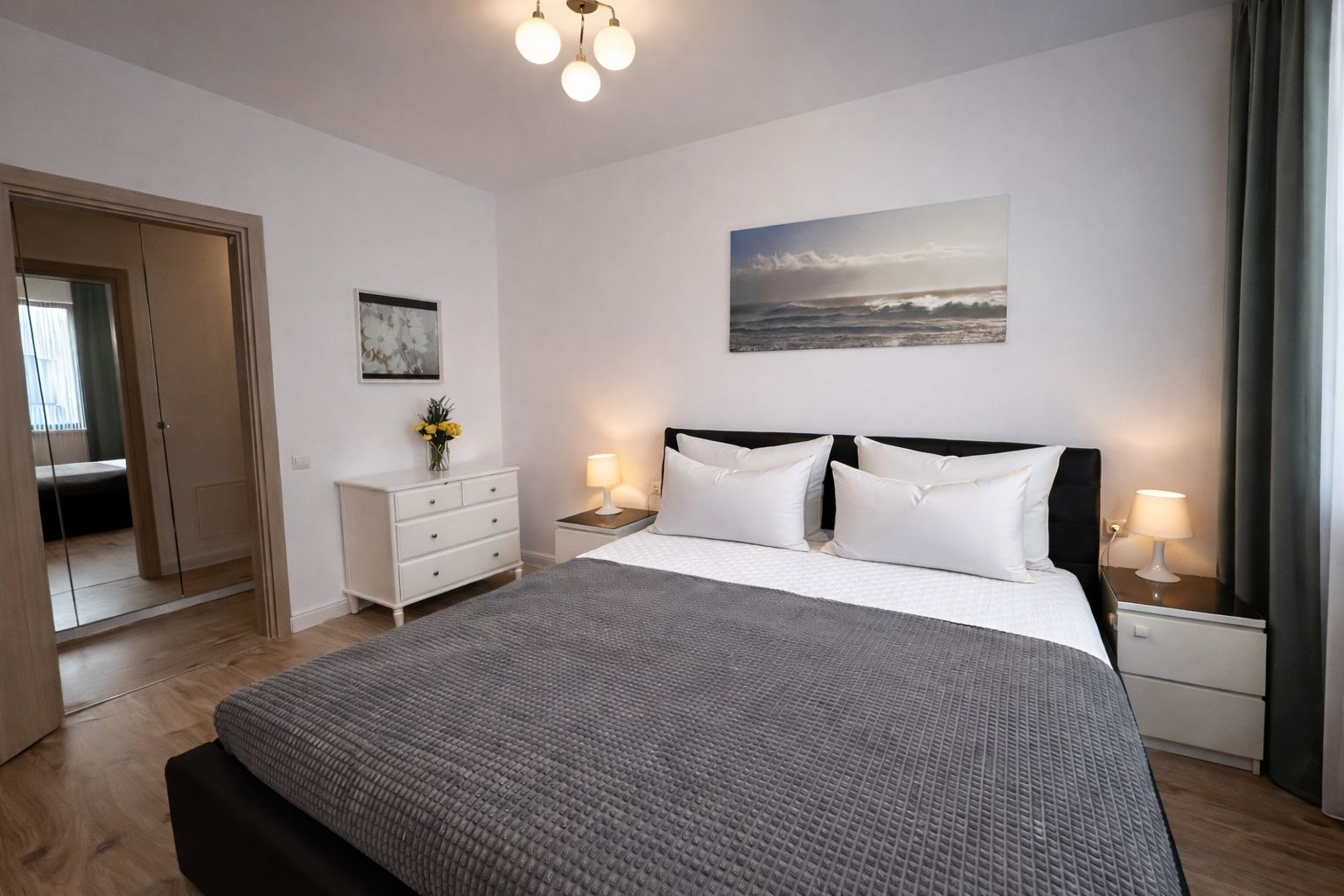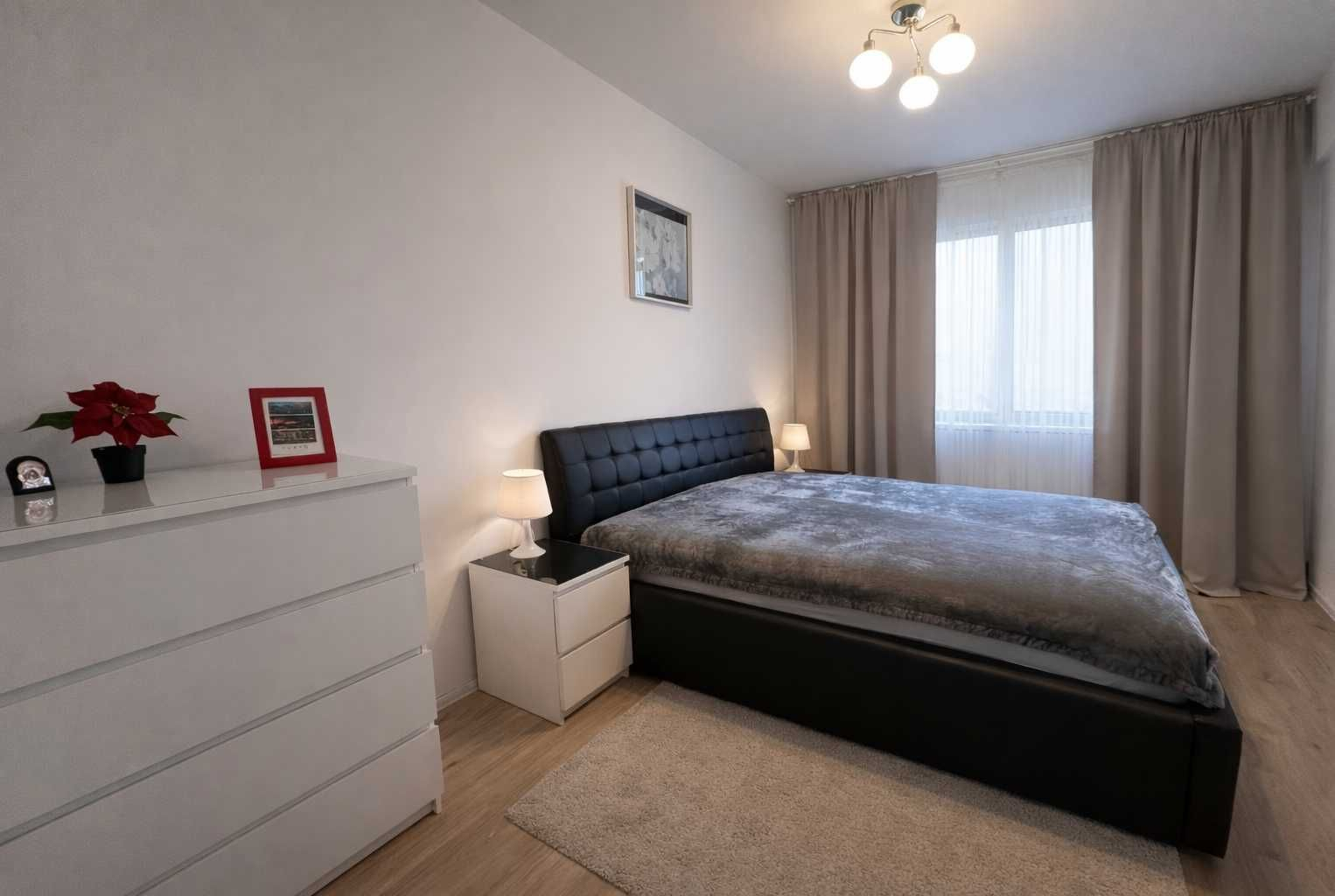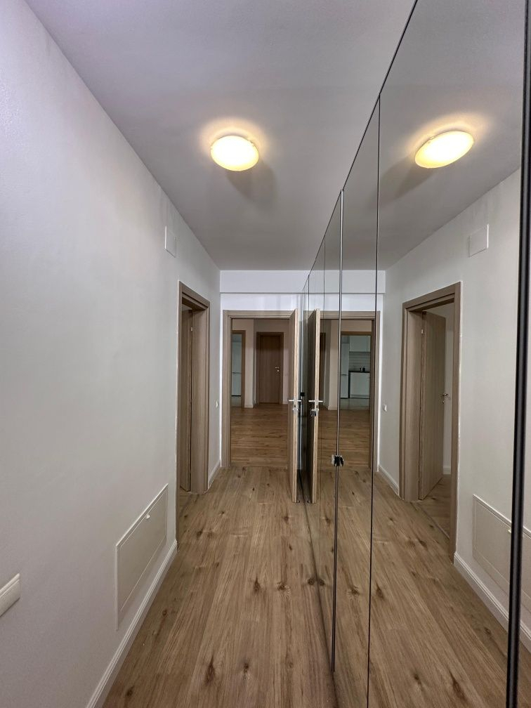 Inchiriez apartament cu 3 camere, situat in complexul rezidential Greenfield Baneasa, mobilat complet. Apartamentul este luminos, cu compartimentare eficienta, living spatios, doua dormitoare, bucatarie complet utilata si 2 bai moderne. Mobilierul este modern, in culori neutre, gandit pentru confort si functionalitate. Proprietatea este potrivita pentru cuplu, familie sau chiriasi corporate care cauta liniste, calitate si stabilitate pe termen mediu sau lung. Complexul ofera acces rapid catre zona de nord, padure, spatii verzi, paza si facilitati moderne. Inchiriere direct de la proprietar. Disponibil imediat Detalii: Complet mobilat si utilat modern Etaj 5 / orientare vest Terasa de 8 mp un colt perfect pentru un moment de liniste Living generos 26 mp, canapea confort, Smart TV Samsung 140 cm Dormitor 12 mp Dormitor 14 mp Bucatarie inchisa 7 mp (plita inductie, cuptor electric, combina frigorifica no frost) Baie cu cada Baie de serviciu Aer conditionat, masina de spalat Dressing-uri si spatii de depozitare generoase. Cheltuieli reduse de intretinere (60EUR/luna). Loc de parcare in fata blocului 50 euro Important: Se inchiriaza doar cu contract Nu acceptam animale de companie Nu colaboram cu agentii Facilitati: Scoala Avenor Parcuri, locuri de joaca, zone pentru animale de companie. Supermarket, Mall, cafenea, restaurant la 50 m. Paza permanenta, aer curat, liniste. Transport: STB 204: Greenfield Metrou Straulesti. STB 203: Greenfield Piata Presei.- Caracteristici 29-04-2026